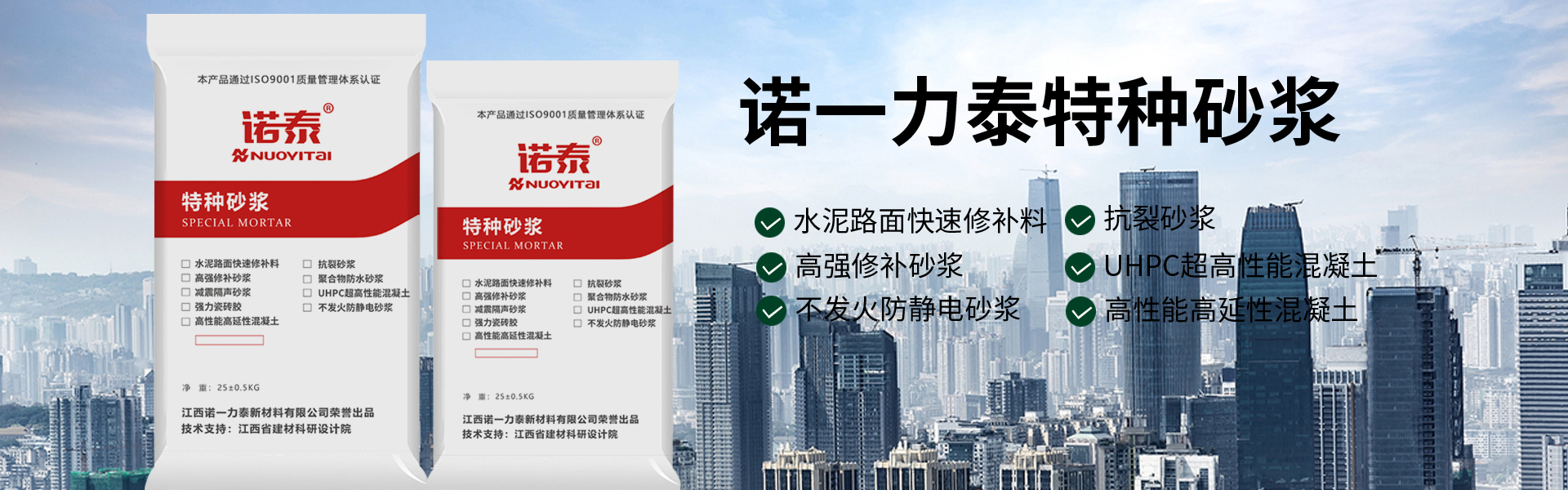 江西諾一力泰新材料有限公司位于江西宜春奉新縣,是專業從事灌漿料、水泥路面修補砂漿抗裂砂漿、防水砂漿、保溫砂漿隔聲砂漿、粘結砂漿等砂漿系列產品生產銷售的廠家。
